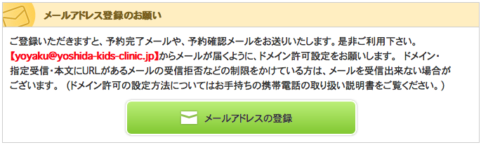 来院時間をスムーズに把握していただけるように、ぜひメールアドレスの登録をしていただけますよう、お願い致します。